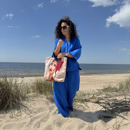 RANKINĖS PER PETĮ lengvos ir talpios. Patogiai gula ant peties. Viduje garbanota pamušalas ir kišenė.