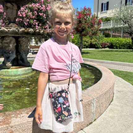 Viduje garbanota pamušalas ir kišenė. Rankinukai lengvi, talpūs ir puikiai nešiojasi. Petnešos ilgis reguliuojasi. Galima nešioti skersai per petį, o galima nešioti ir ant peties. Skalbiasi 30°C.