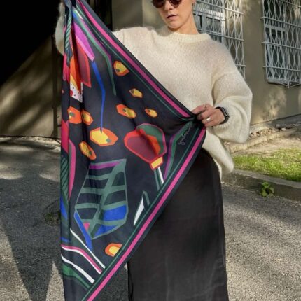 Skarelė GARBANOTA GĖLĖ juodam fone