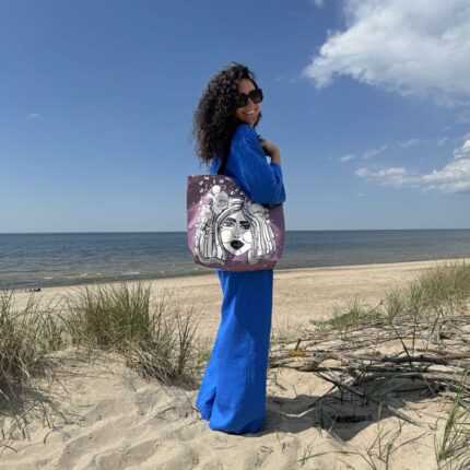 Kiekviena kuprinė su garbanota autoriniu darbu. O viduje ant kišenės rasite dar vieną paveikslą. Kokį - staigmena!