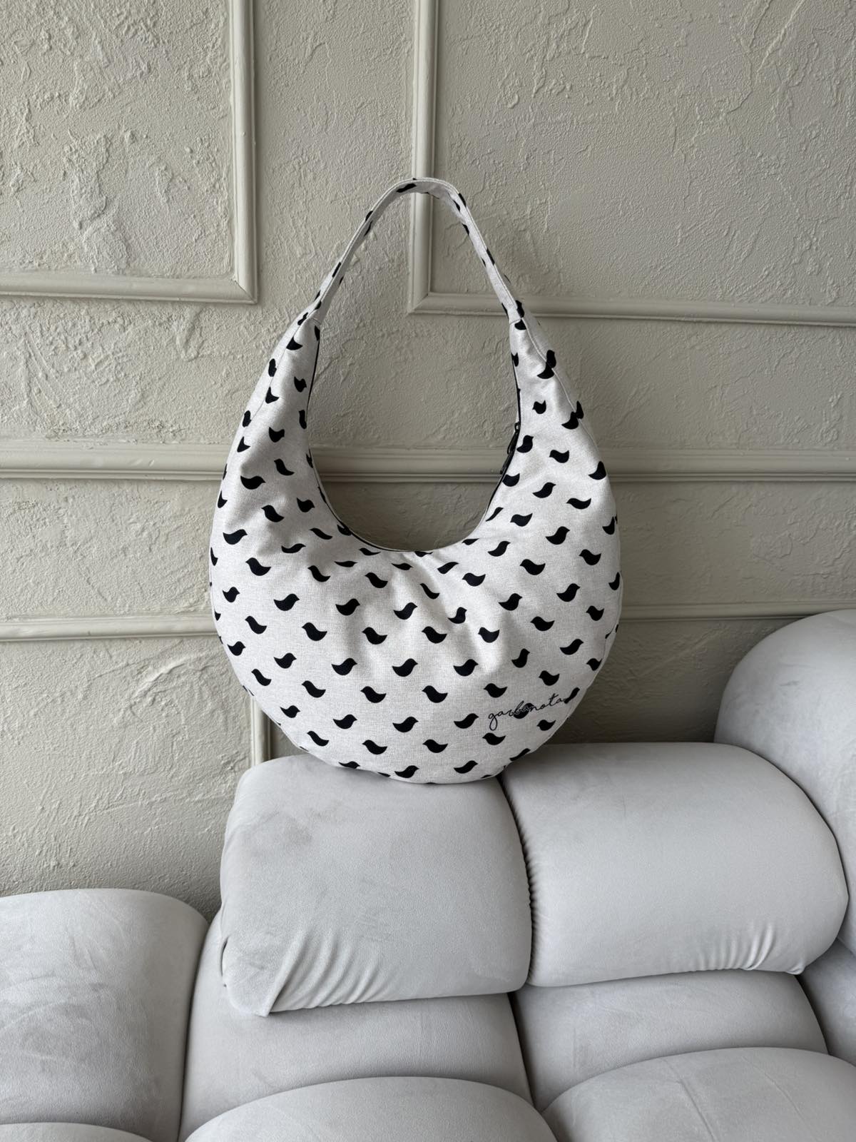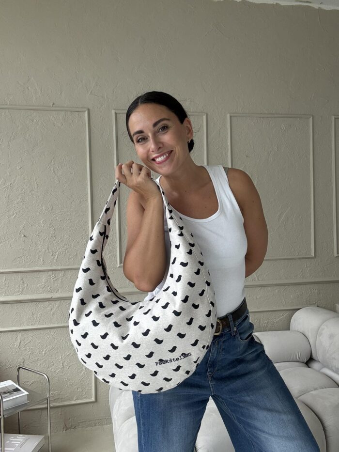 Lengva, itin talpi, patogiai gula ant peties. Audinys purus ir šiek tiek laiko formą. Viduje pamušalas ir gili kišenė su užtrauktuku. Petnešos ilgis nesireguliuoja.