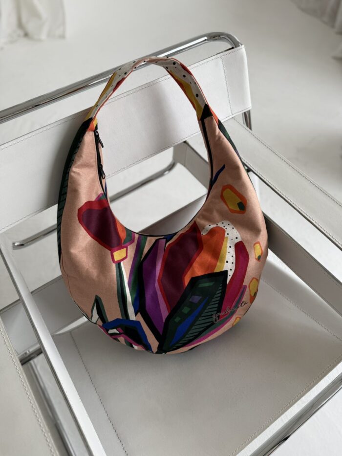 Lengva, itin talpi, patogiai gula ant peties. Audinys purus ir šiek tiek laiko formą. Viduje pamušalas ir gili kišenė su užtrauktuku. Petnešos ilgis nesireguliuoja.