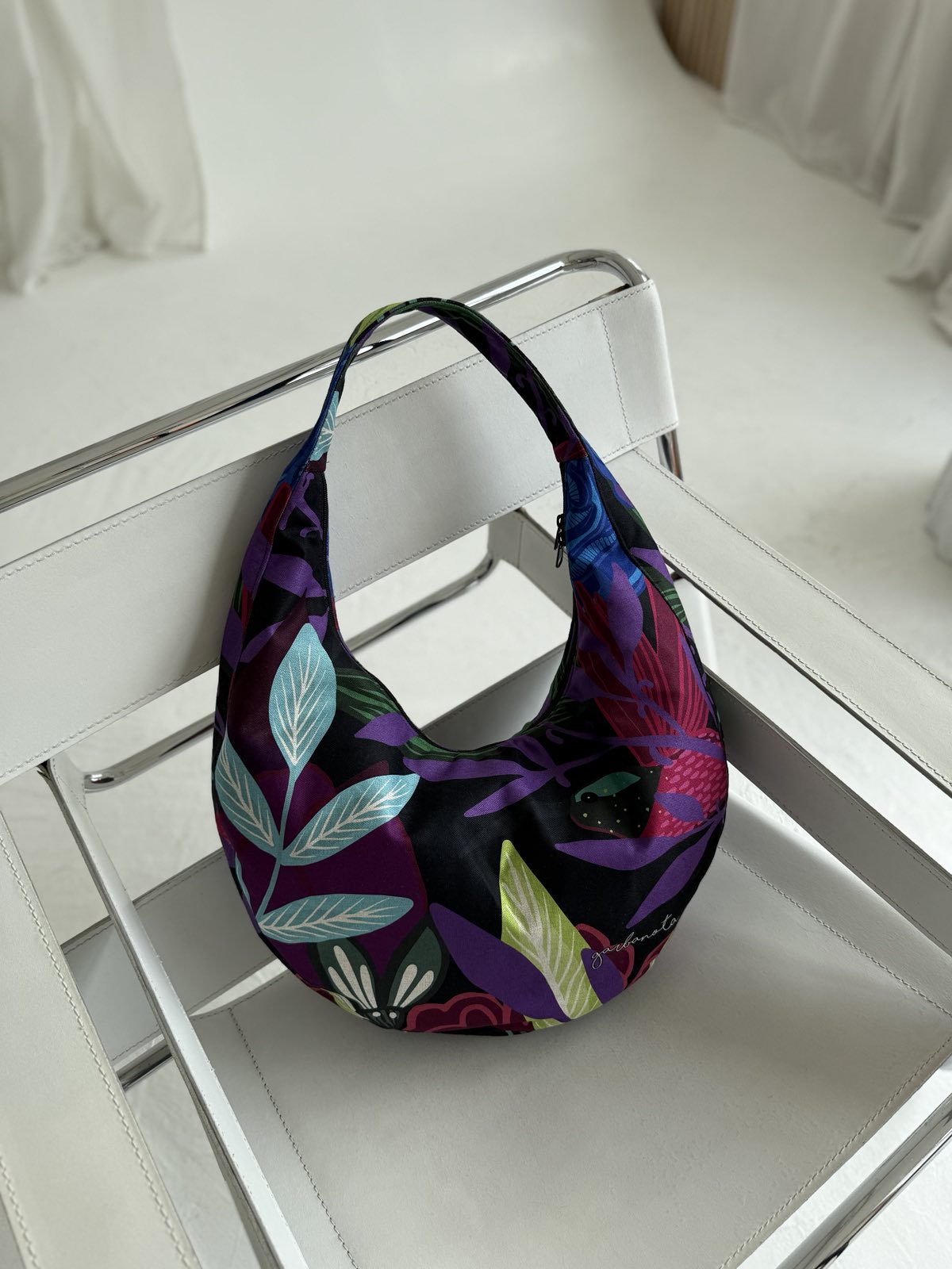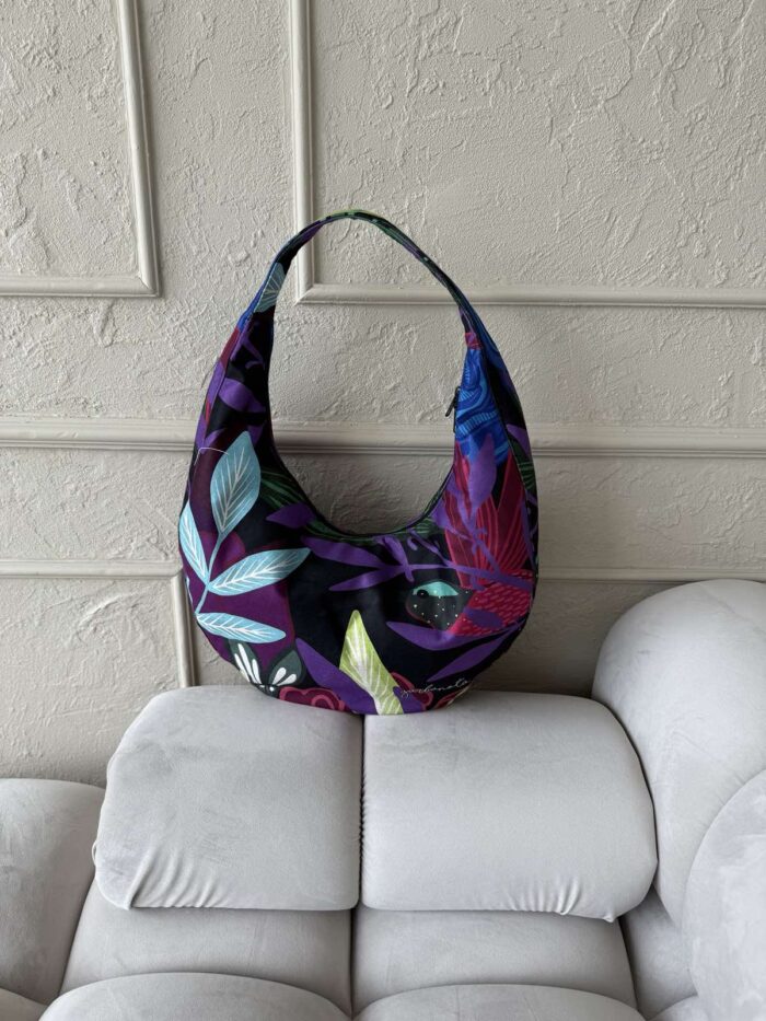 Lengva, itin talpi, patogiai gula ant peties. Audinys purus ir šiek tiek laiko formą. Viduje pamušalas ir gili kišenė su užtrauktuku. Petnešos ilgis nesireguliuoja.