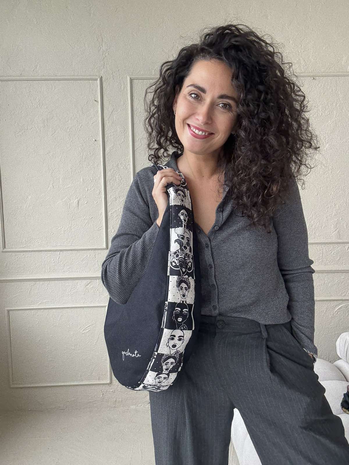 Lengva, itin talpi, patogiai gula ant peties. Audinys purus ir šiek tiek laiko formą. Viduje pamušalas ir gili kišenė su užtrauktuku. Petnešos ilgis nesireguliuoja.