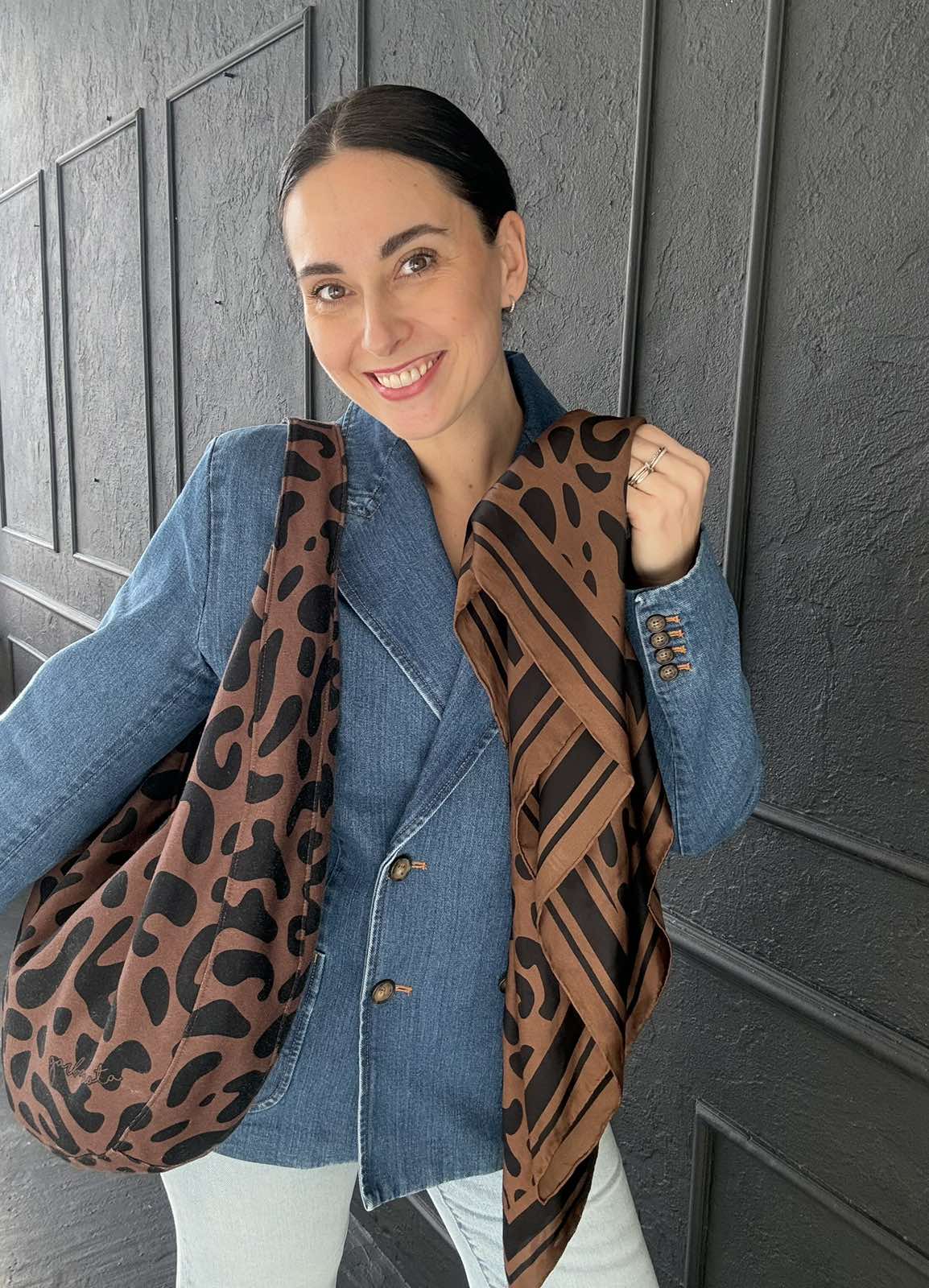 HOBO širdelė leopardinė + Skarelė garbanota leopardas