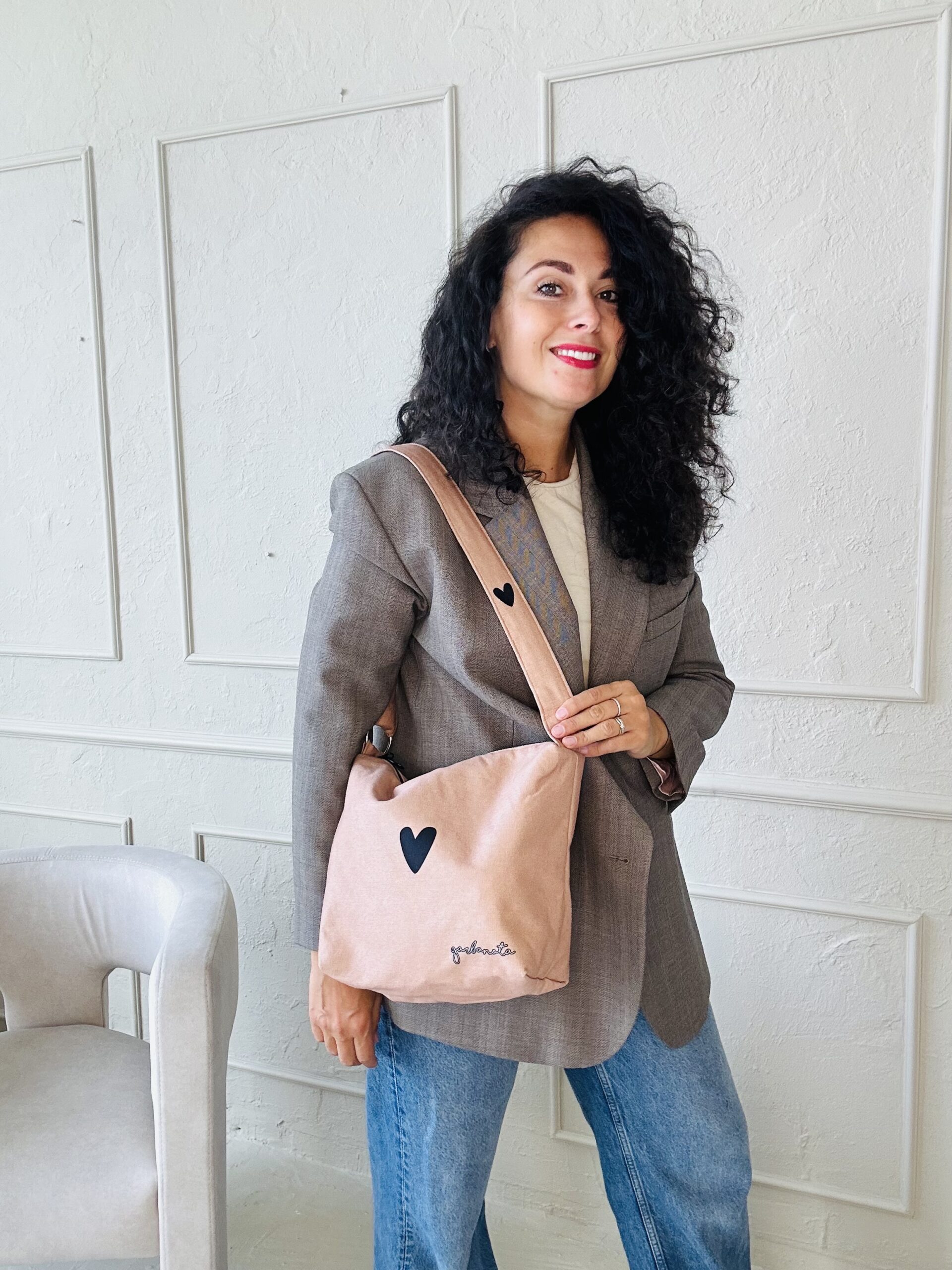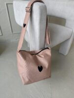 PREMIUM rankinė KREMINĖ, juoda širdelė