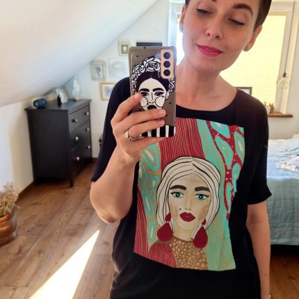 Vyriški marškinėliai su mano tapybos paveikslu.