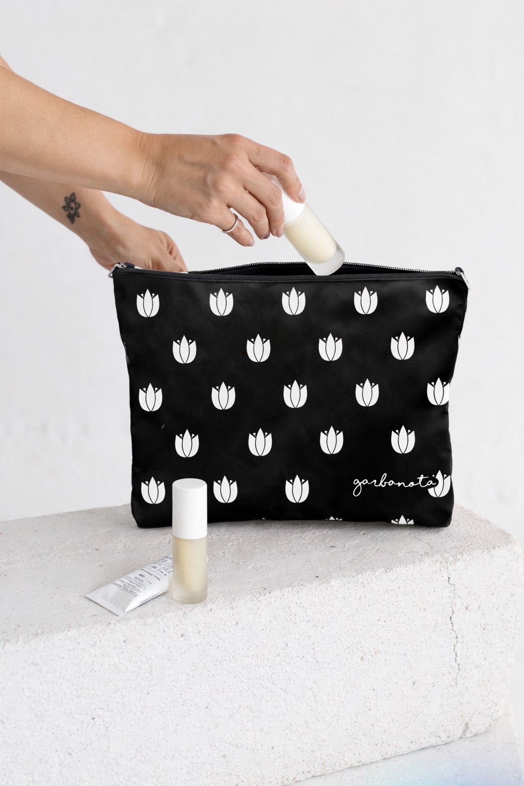 Kosmetinė / delninė NAOMI su gėlių šukuosena juoda