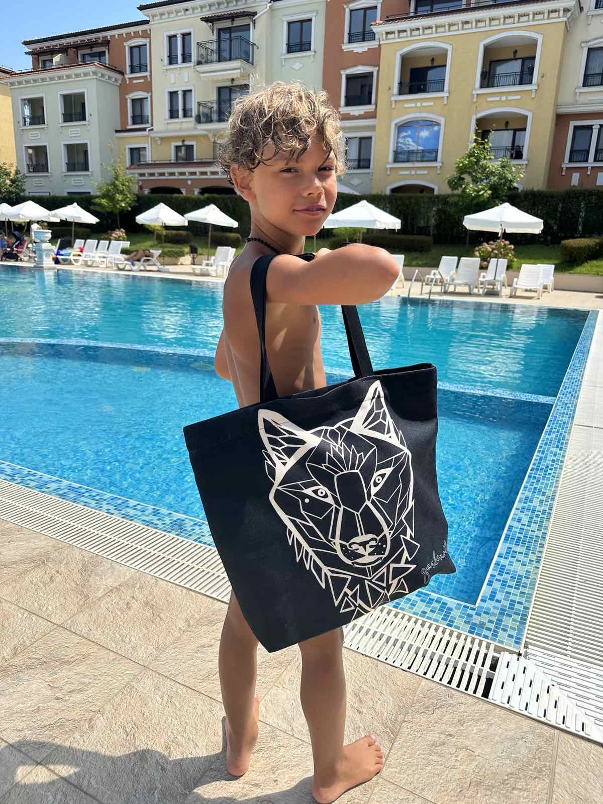 Juodas pirkinių krepšys – Baltas VILKAS