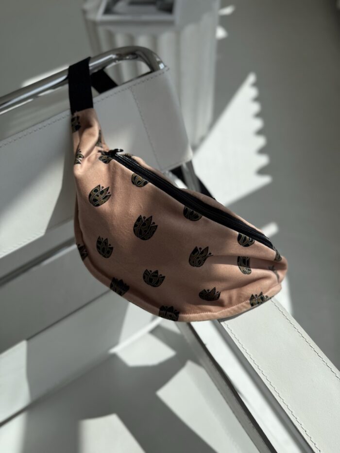 Garbanota juosmens rankinės lengvos ir patogios, talpios. Diržo ilgis reguliuojasi.