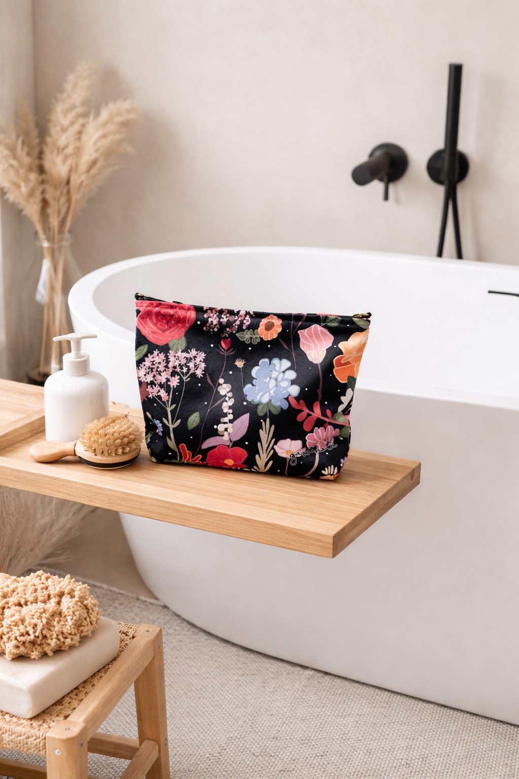 Kosmetinė / delninė NAOMI su gėlių šukuosena juoda