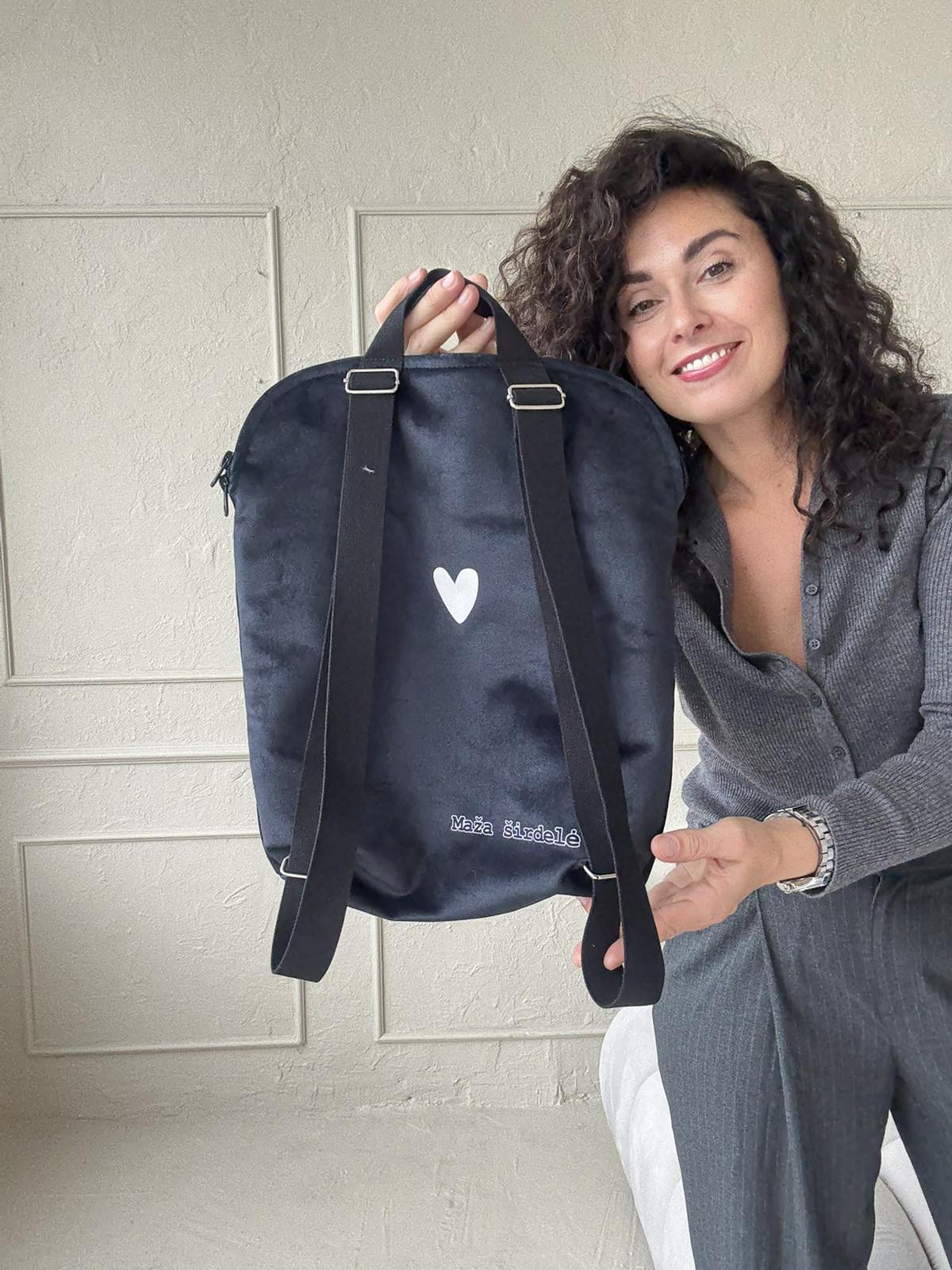 Kuprinę rekomenduoju komplektuoti su garbanota kosmetine. Patogu smuokiems daiktams nešiotis.