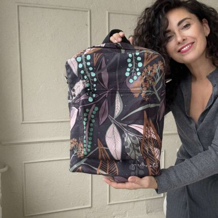 Kiekviena kuprinė su garbanota autoriniu darbu. O viduje ant kišenės rasite dar vieną paveikslą. Kokį - staigmena!