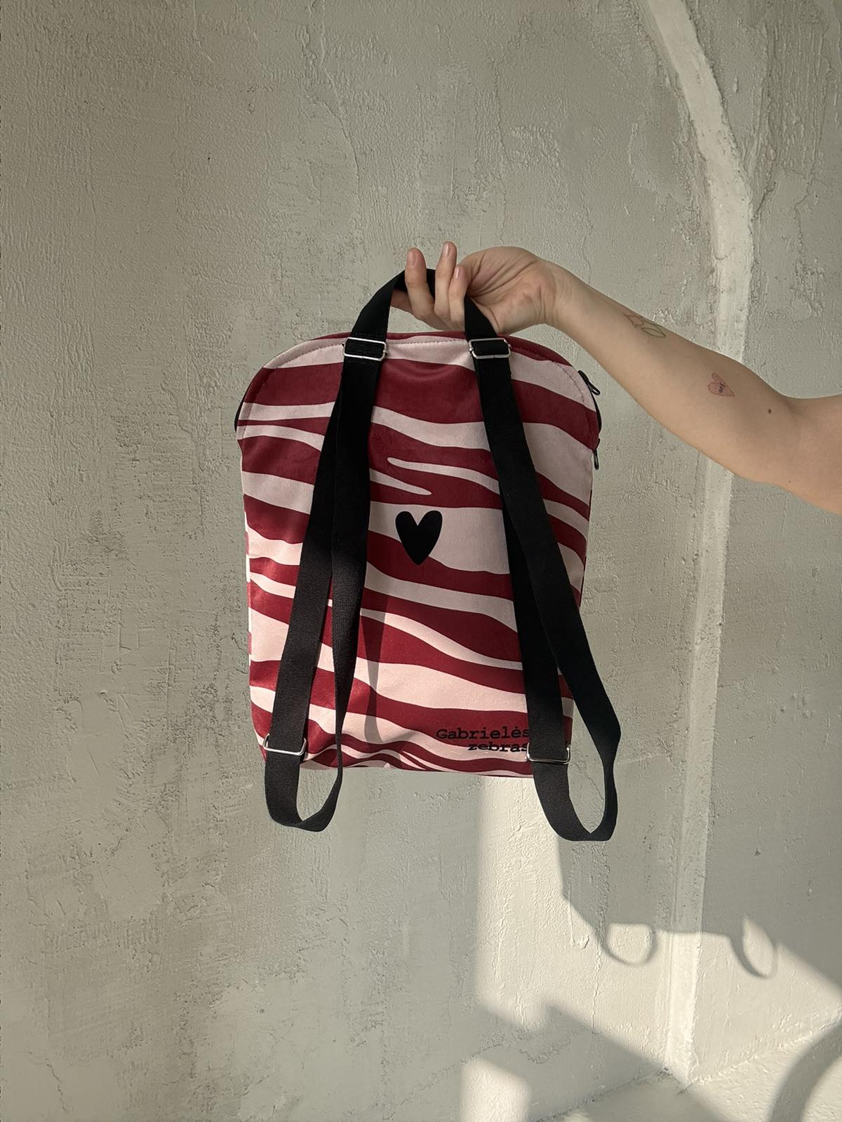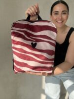 Kiekviena kuprinė su garbanota autoriniu darbu. O viduje ant kišenės rasite dar vieną paveikslą. Kokį - staigmena!