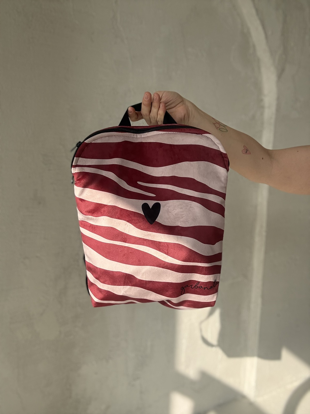 Kuprinę rekomenduoju komplektuoti su garbanota kosmetine. Patogu smuokiems daiktams nešiotis.