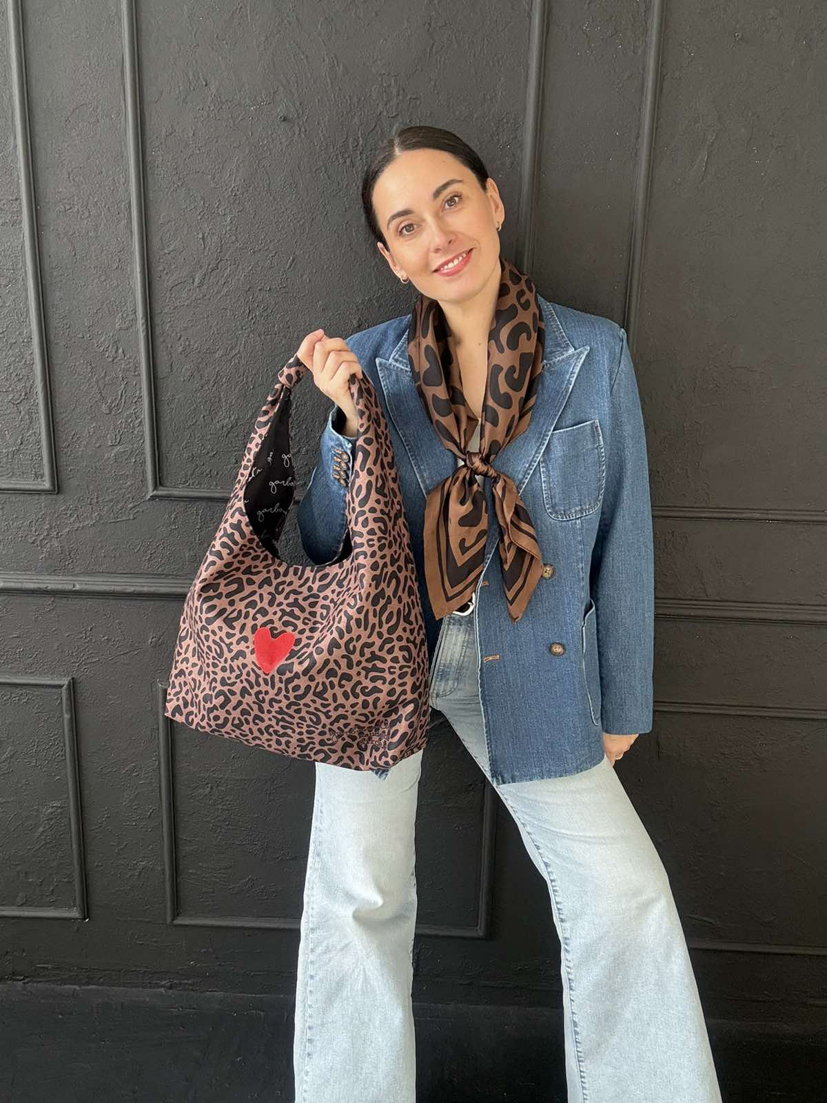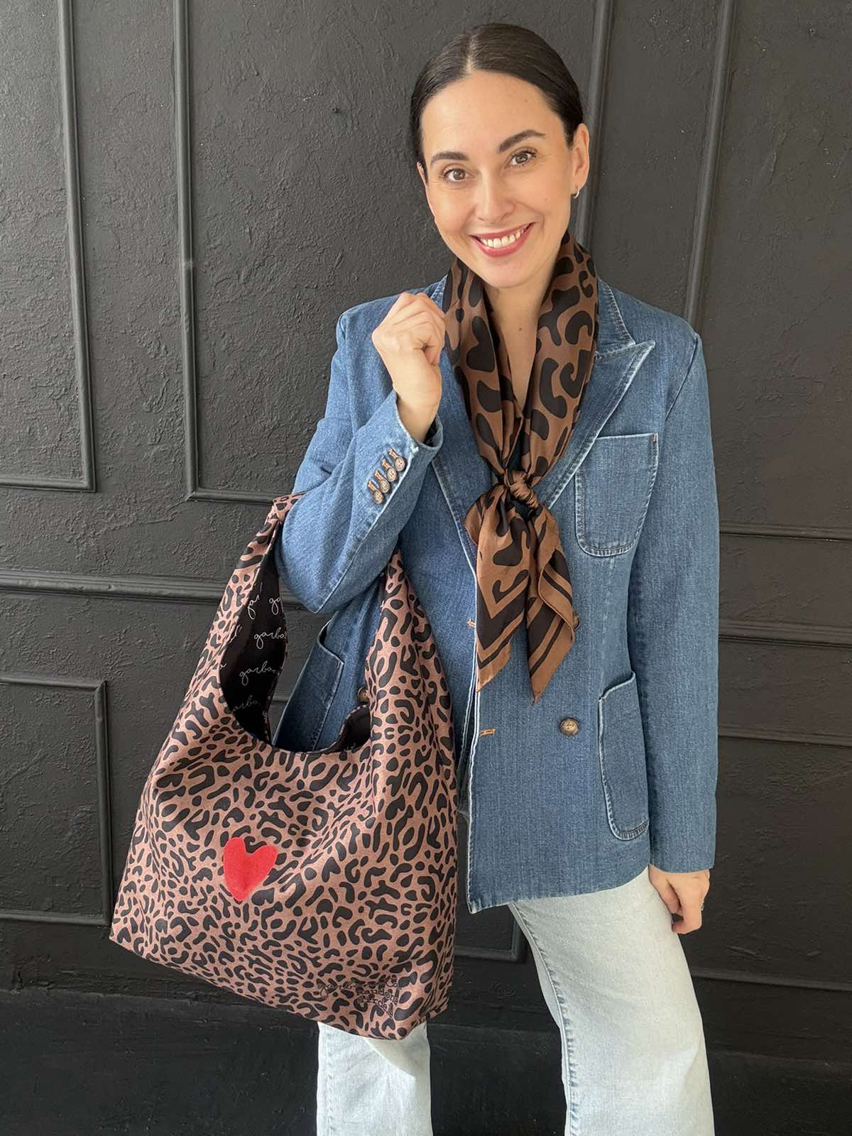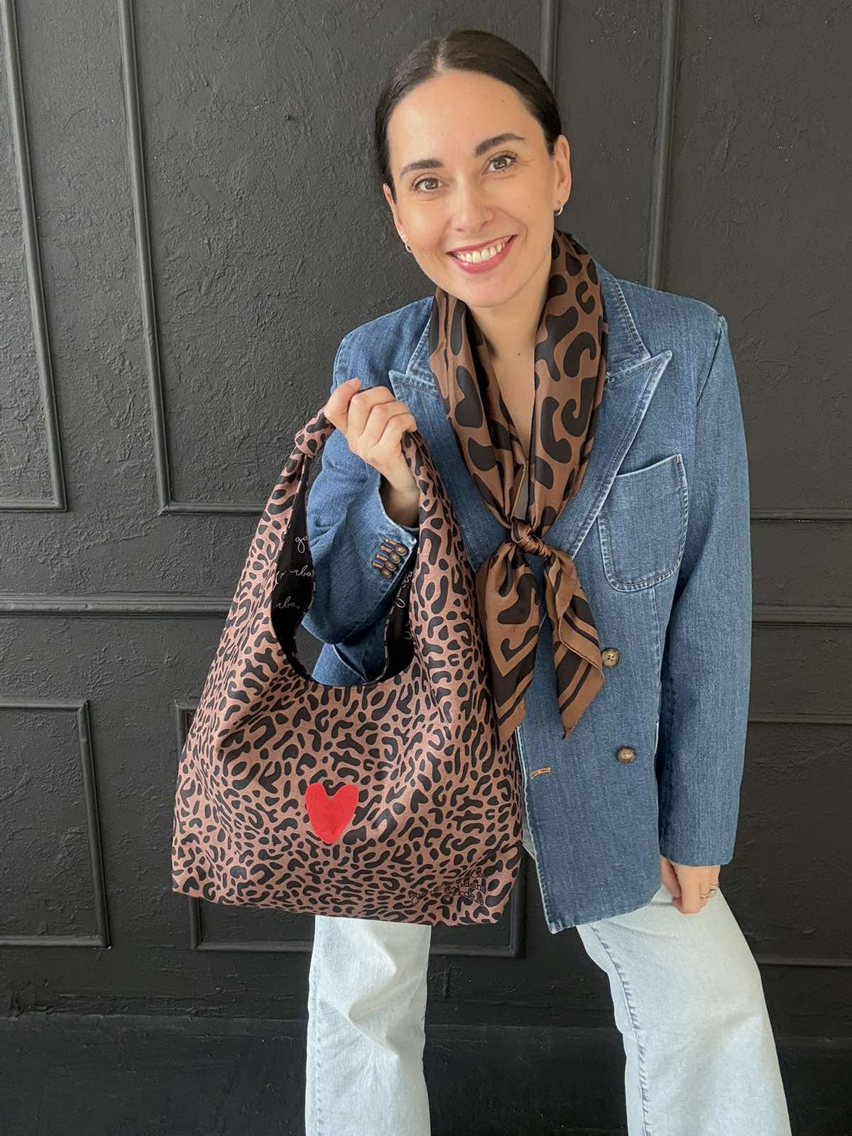 HOBO rankinė Klasikinis leopardas, raudona širdelė