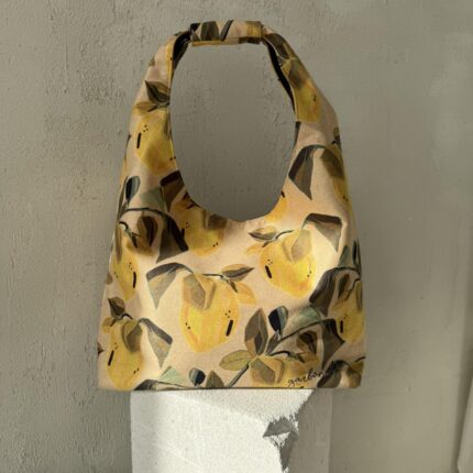 Rankinė Geltona širdelė, pilkam fone
