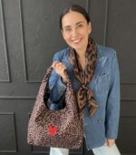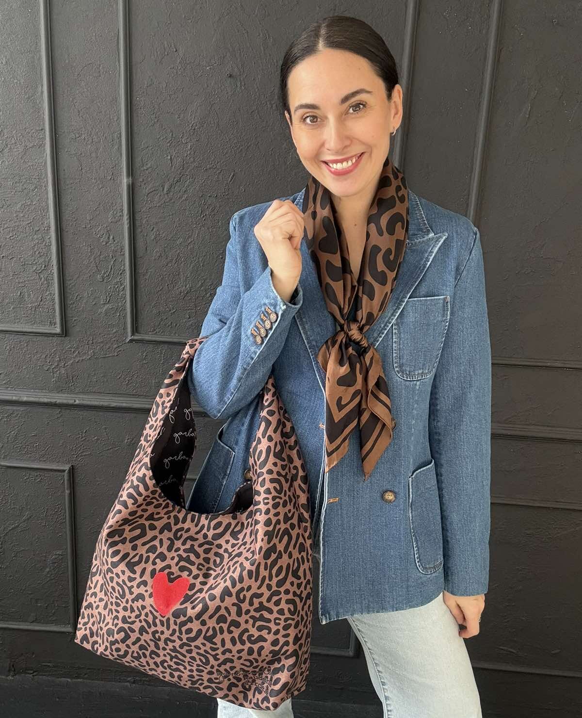 Moon rankinė + šilko skara Raudona širdelė, klasikinis leopardas
