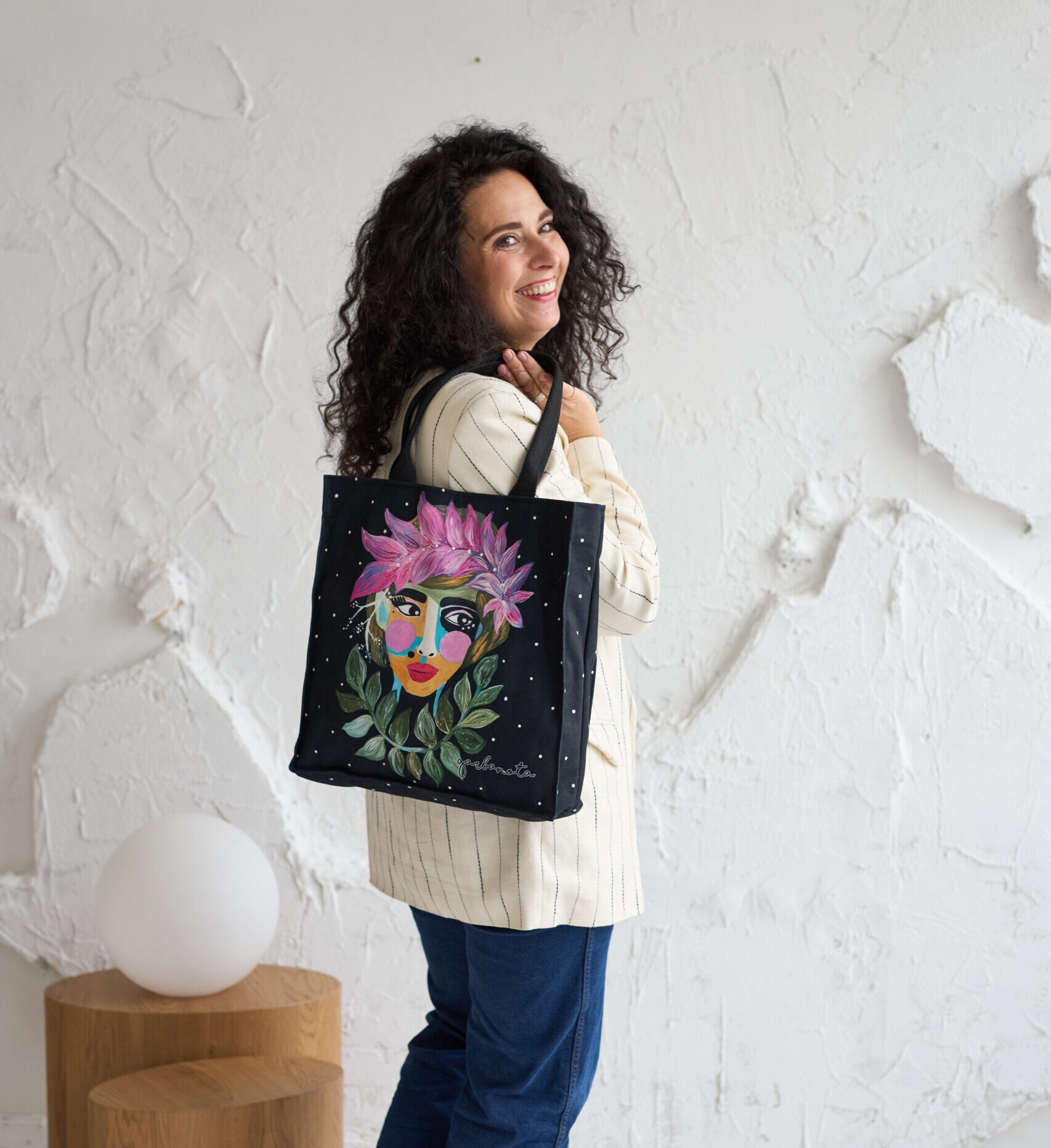PREMIUM rankinė SOFI, spalvota juodam fone