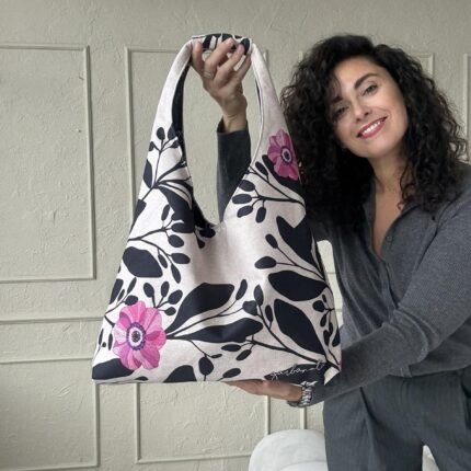 Rankinės su autoriniais garbanota darbais. Viduje kišenė ant kurios rasite dar vieną paveikslą. Kokį - staigmena.