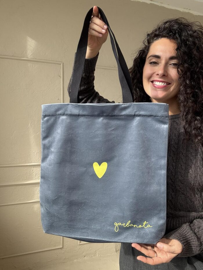 Rankinė Geltona širdelė, pilkam fone