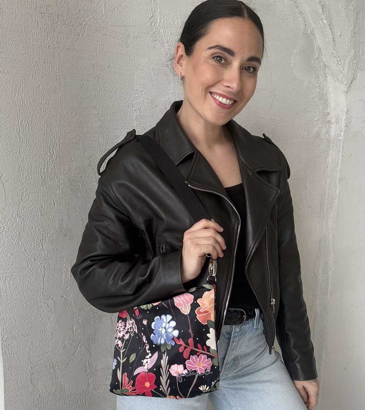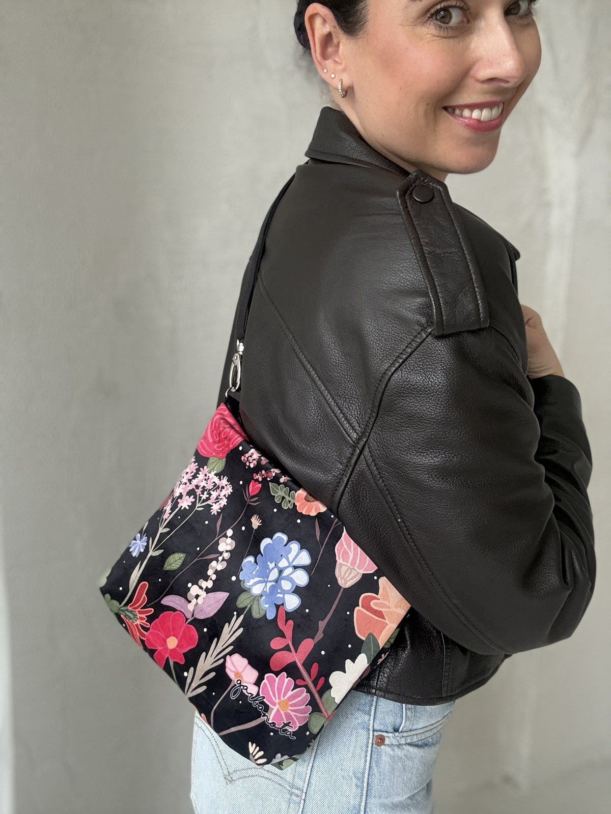 Skirtingų petnešų pagalba, garbanota rankinę per petį galima akimirksniu pakeisti.