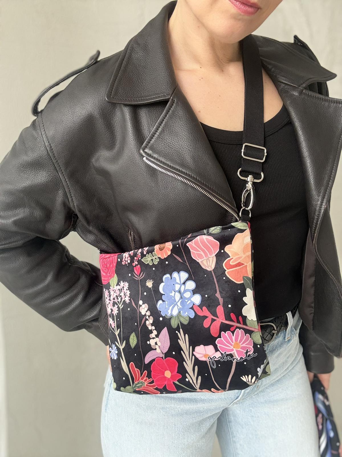 RANKINĖS PER PETĮ lengvos ir talpios. Patogiai gula ant peties. Viduje garbanota pamušalas ir kišenė.
