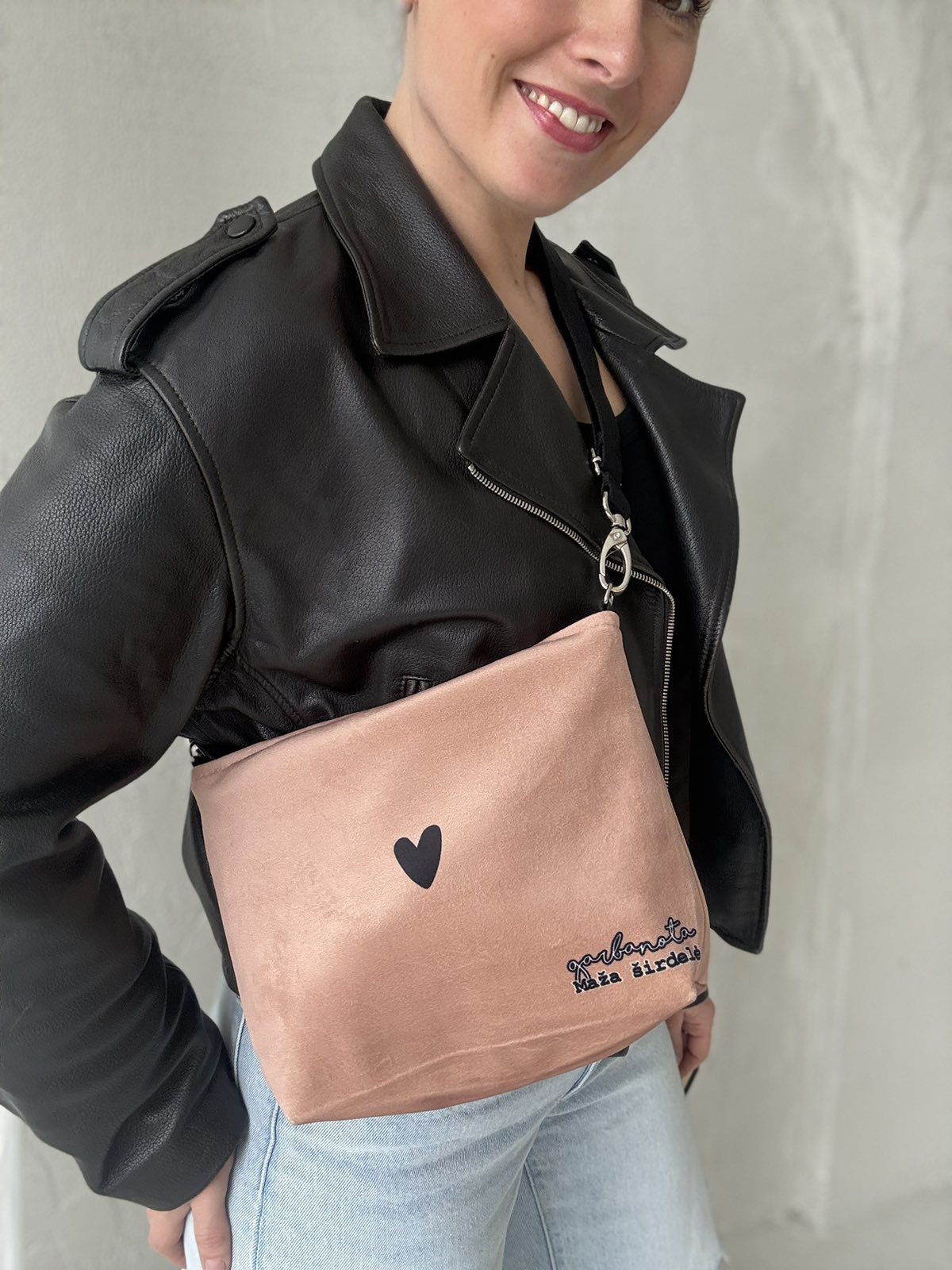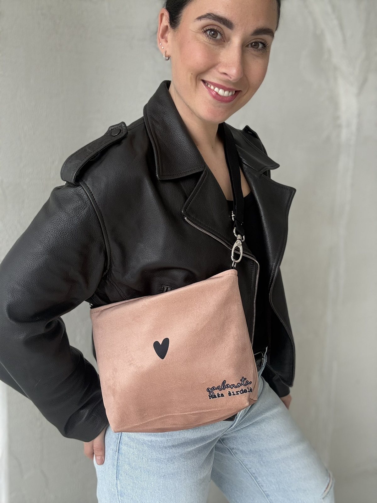 RANKINĖS PER PETĮ lengvos ir talpios. Patogiai gula ant peties. Viduje garbanota pamušalas ir kišenė.