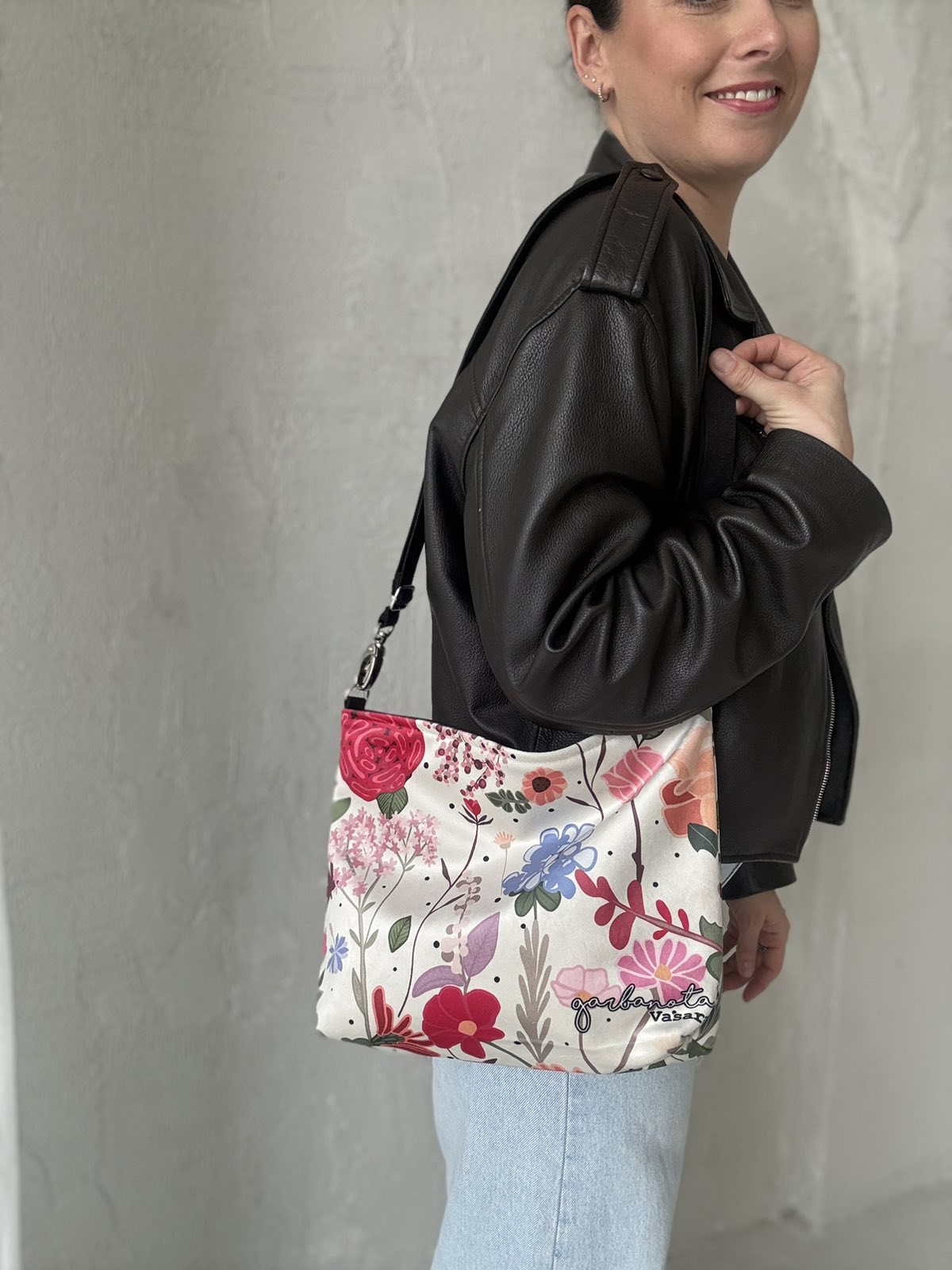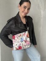 Skirtingų petnešų pagalba, garbanota rankinę per petį galima akimirksniu pakeisti.