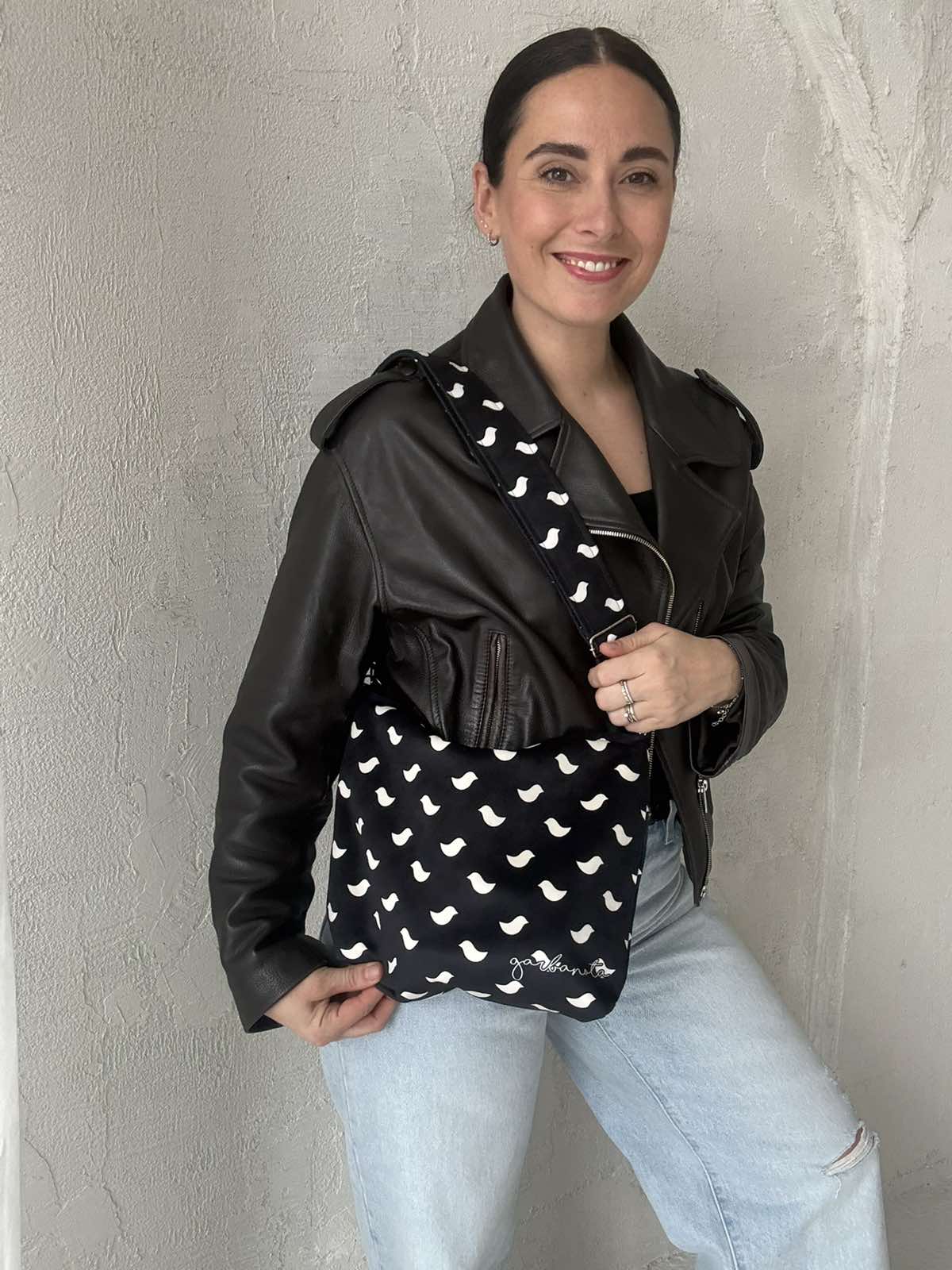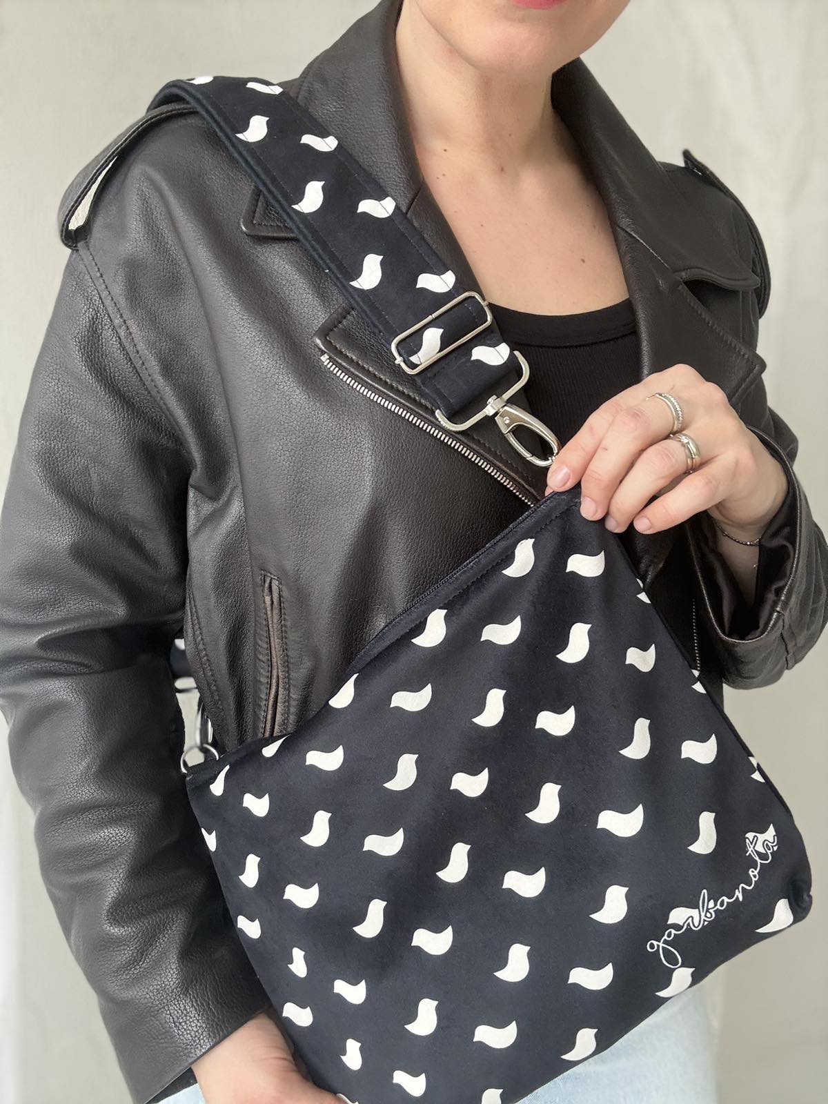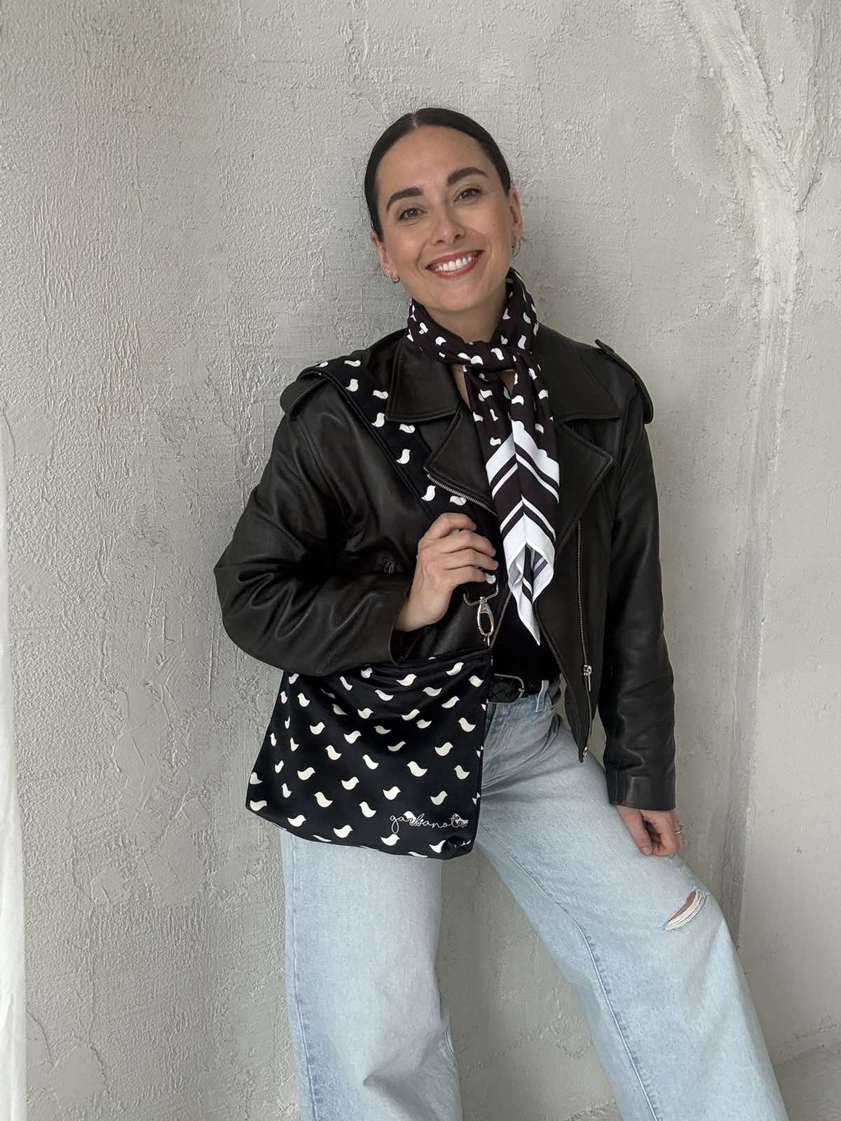 Rankinė per petį + Skarelė PAUKŠTELIAI, juoda