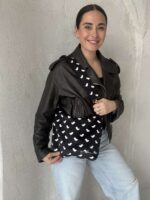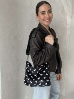 Skirtingų petnešų pagalba, garbanota rankinę per petį galima akimirksniu pakeisti.