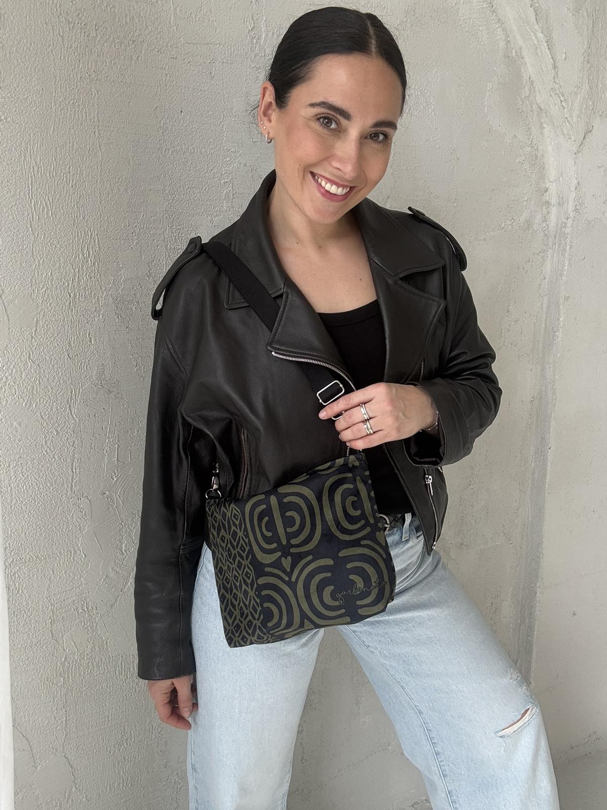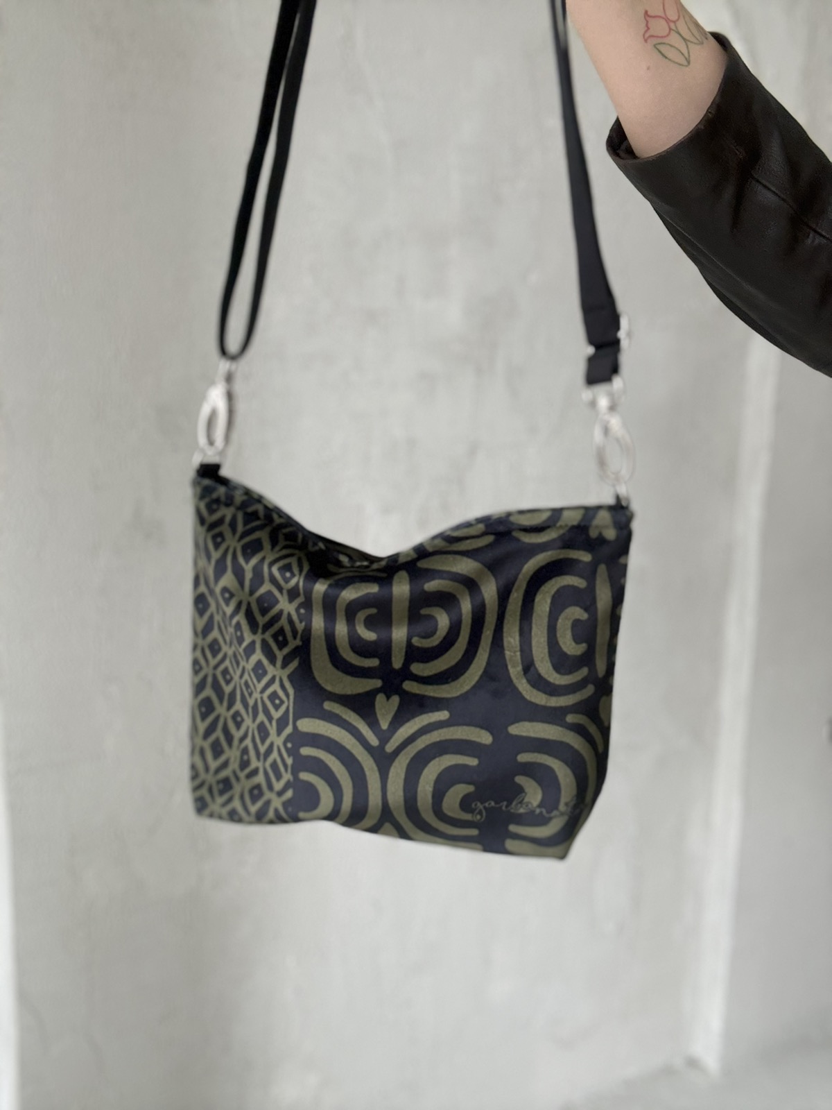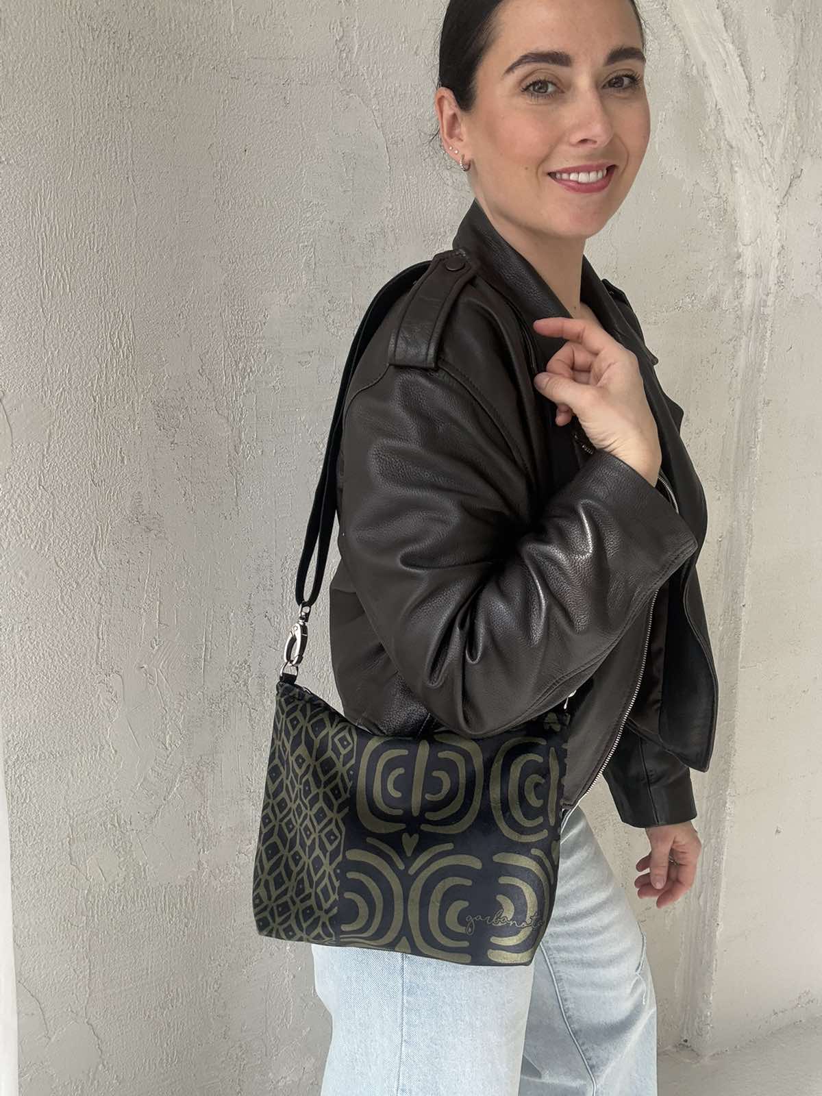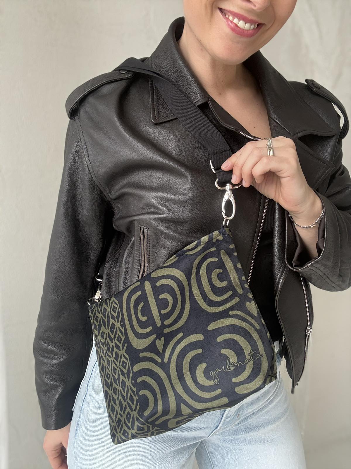 Skirtingų petnešų pagalba, garbanota rankinę per petį galima akimirksniu pakeisti.