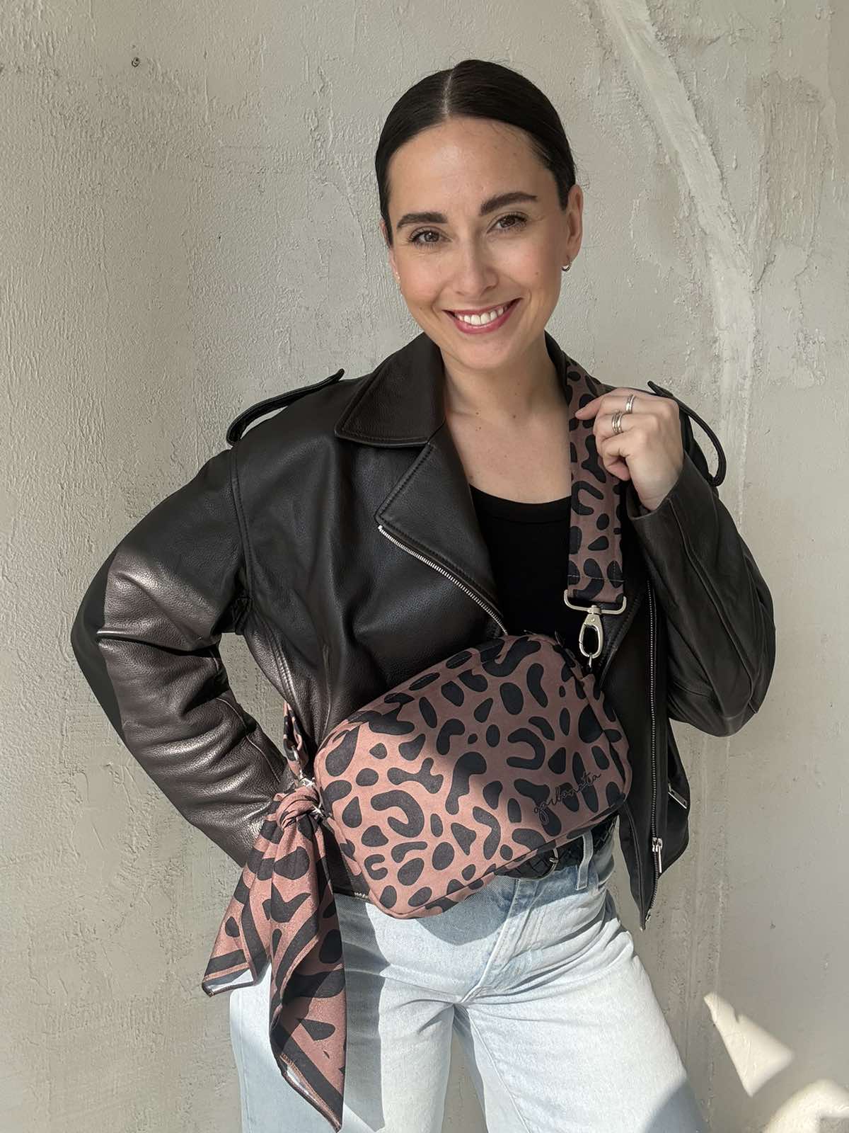 Pradžia MOTERIMS Rankinės su plačia petneša Rankinukas LEOPARDAS