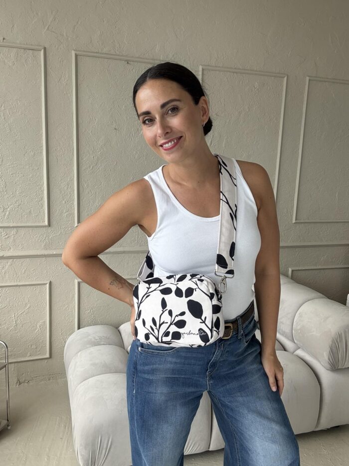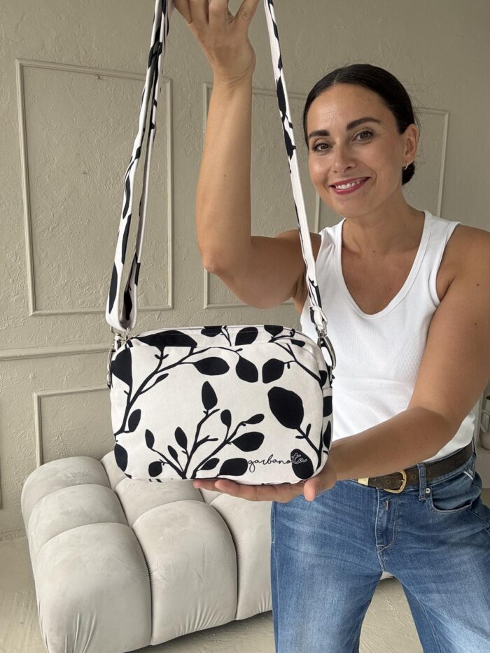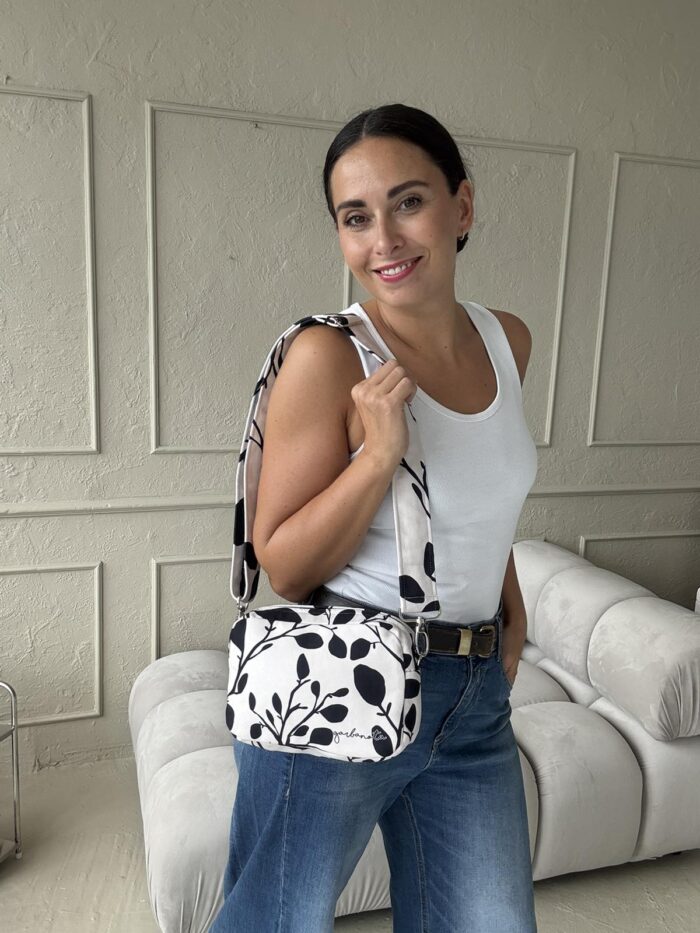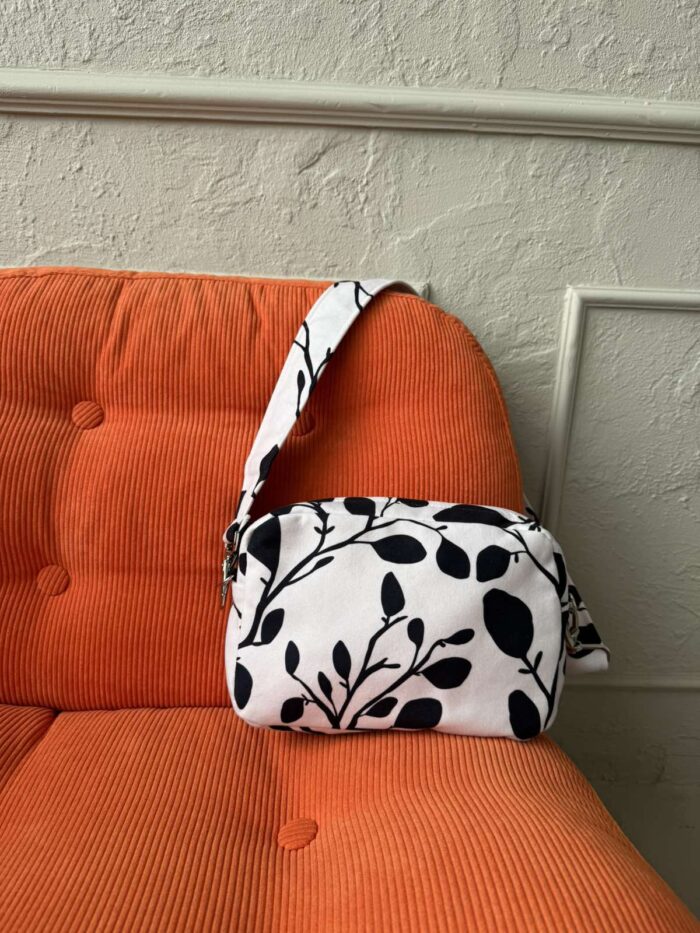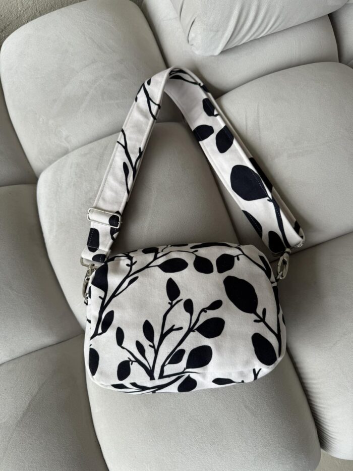 Viduje garbanota pamušalas ir kišenė. Rankinukai lengvi, talpūs ir puikiai nešiojasi. Petnešos ilgis reguliuojasi. Galima nešioti skersai per petį, o galima nešioti ir ant peties. Skalbiasi 30°C.