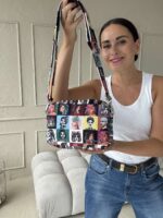 Viduje garbanota pamušalas ir kišenė. Rankinukai lengvi, talpūs ir puikiai nešiojasi. Petnešos ilgis reguliuojasi. Galima nešioti skersai per petį, o galima nešioti ir ant peties. Skalbiasi 30°C.