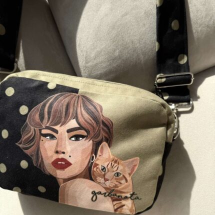 Viduje garbanota pamušalas ir kišenė. Rankinukai lengvi, talpūs ir puikiai nešiojasi. Petnešos ilgis reguliuojasi. Galima nešioti skersai per petį, o galima nešioti ir ant peties. Skalbiasi 30°C.