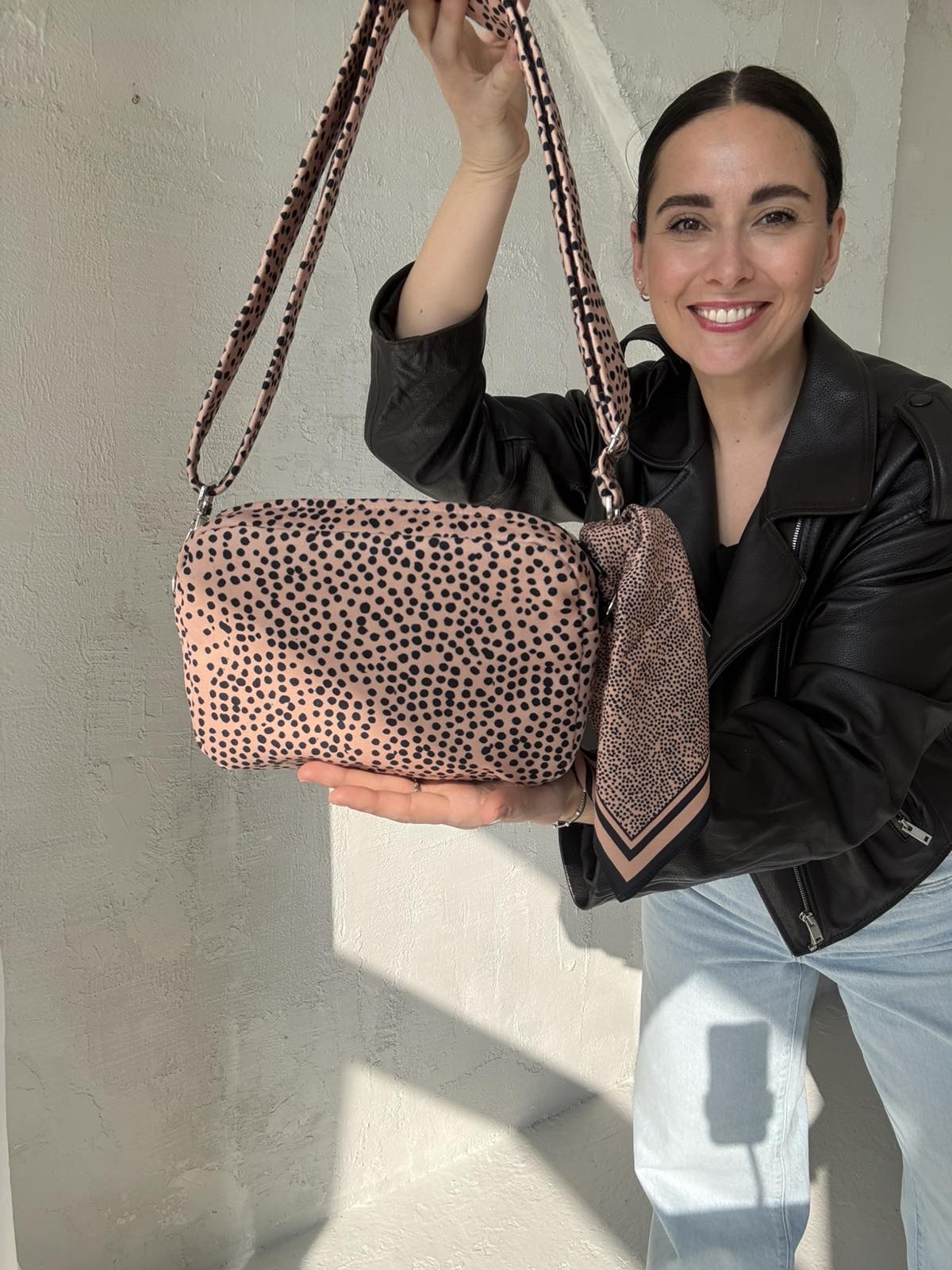 Pradžia MOTERIMS Rankinės su plačia petneša Rankinukas TAŠKELIAI, rusvas