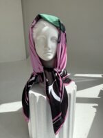 S dydis – perlenkus skarelę į trikampuo formą, tinka rišti ant kaklo. Susukis skarelę, galima nešioti kaip kaklaskarę.