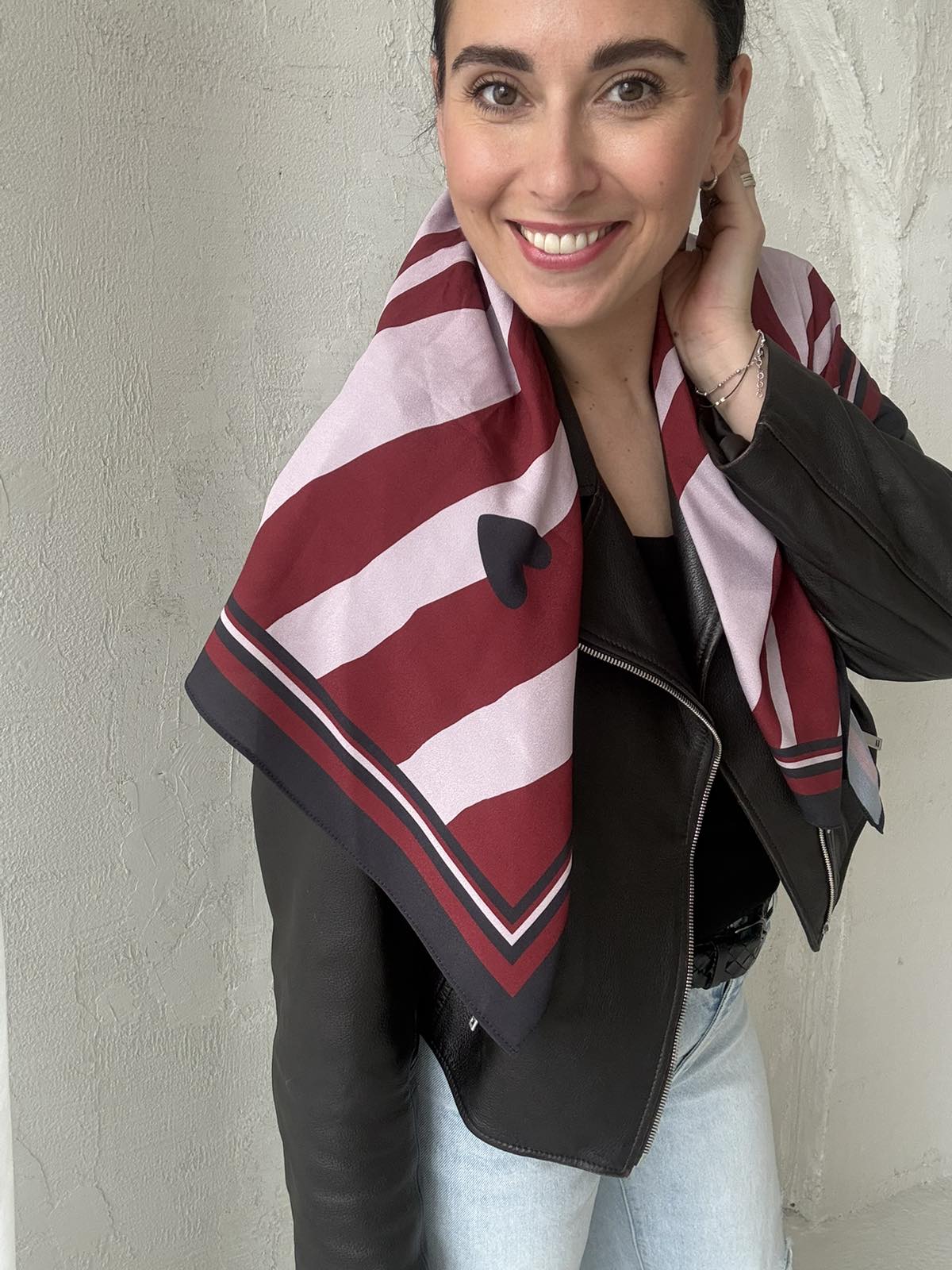 Skarelė ROŽINĖS ŠIRDELĖS,juoda su leopardo krašteliu