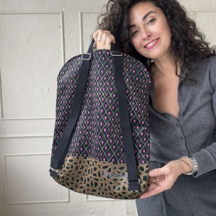 Kiekviena kuprinė su garbanota autoriniu darbu. O viduje ant kišenės rasite dar vieną paveikslą. Kokį - staigmena!