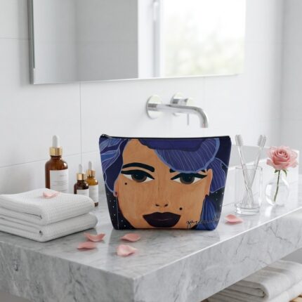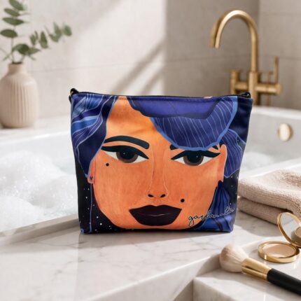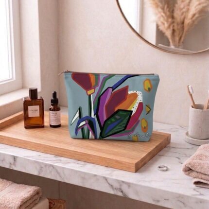Kosmetinė GARBANOTA GĖLĖ, melsvam fone