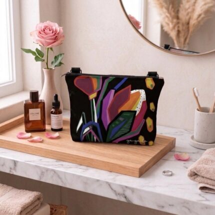 Kosmetinė GARBANOTA GĖLĖ juodam fone