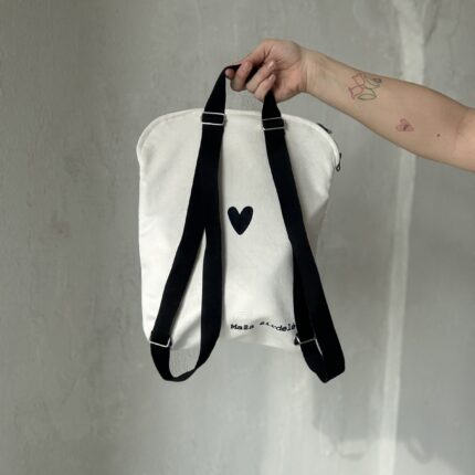 Kuprinė BALTA, juoda širdelė